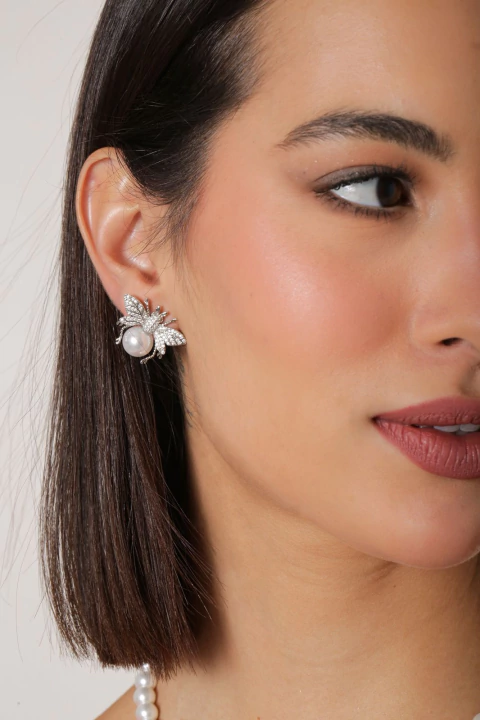 O Brinco Abelha Pérola é uma peça delicada e sofisticada que une charme e brilho. Inspirado na alta joalheria, a peça traz asas cravejadas em microzircônias e corpo formado por uma pérola clássica, criando um contraste luxuoso.